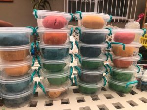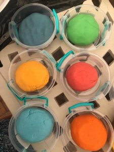 Kavita and Trisha (above) volunteered to make play dough for the children’s education packs which will be handed out next week. Each child will receive their own tub of colourful play dough!