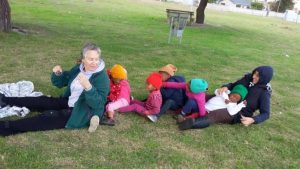 Our school year ended on a high note with teachers, learners, moms and siblings enjoying a lovely picnic in the park. Relaxing under the trees gave moms and teachers some time to share what had been learnt in the classroom and also what shifts had been observed in the children. Before going home each child received a gift bag filled with toys as well as practical items and three of the learners also received journals in recognition of good attendance. As an expression of thanks to their moms the children then presented each mother with a decorated pine cone that they had created in class. We ended our picnic to the joyful sound of the children singing their favourite song “Jesus’s love is like a circle, a circle big and round, big and round….”